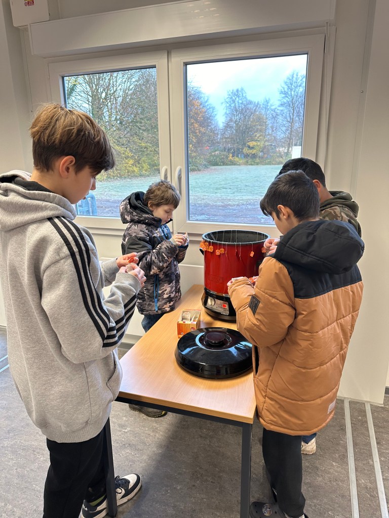 Es duftet herrlich nach selbstgemachten Kinderpunsch auf dem Schulhof der Alfred Adler Schule – In der ersten großen Pause drängten sich die Schüler:innen vor dem Fenster von Raum 2. Viele kleine Verkäufer:innen begrüßten freudig ihre Kundschaft, denn unsere Eulen- und Pandaklasse hatte einen Pausenverkauf für die Schulgemeinde vorbereitet.