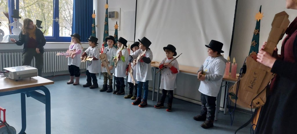 Von der ersten bis zur vierten Klasse präsentierten die Schüler:innen Gedichte, Weihnachtswitze, Weihnachtslieder und sogar einen eigenen Film zum Bau eines eigenen Zuckerweihnachtshauses.