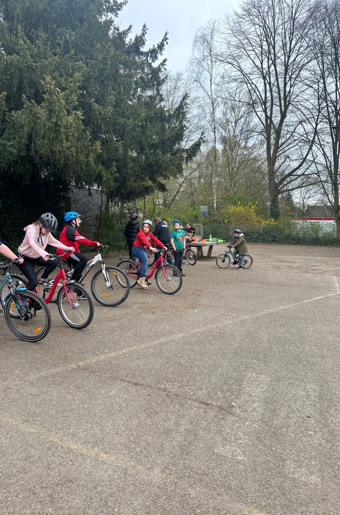 Mit großem Eifer trainieren die Schüler:innen der vierten Klassen für die Radfahrprüfung. Neben dem praktischen Teil, lernten die Kinder zusammen mit Herrn Ratdke von der Polizei, auch die Theorie. Dabei konnten die Fahranfänger:innen schon auf viele Kompetenzen zurückgreifen. Mit großer Zuversicht werden hoffentlich dann alle Kinder am Prüfungstag nach den Ferien ihren Fahrradführerschein erhalten.