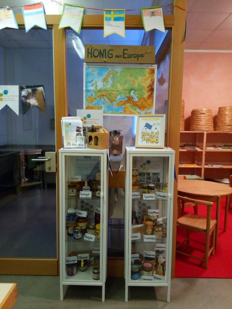Noch vor den Ferien wurde die Ausstellung festlich eröffnet. Nun ziehen die Vitrinen weiter an den nächsten Ausstellungsort. Es ist das Duisburger Bienenmuseum. Hier kann man zu den Öffnungszeiten und zu besonderen Festen auch die Ausstellungsvitrinen besichtigen.