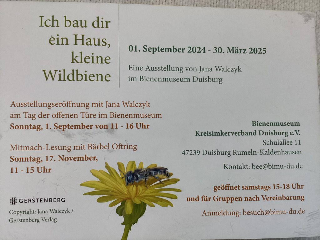 Duisburg hat ein wunderbares kleines Bienenmuseum. Am 1. September von 11:00-16:00 Uhr findet dort ein Tag der offenen Tür statt.