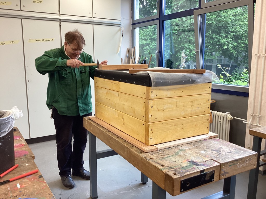 In den kommenden Wochen werden noch mehr Klassen ihre Klassenraumumgebung mit einem Hochbeet verschönern. Unterstützt werden wir dabei von unserem Werklehrer Herrn Schäfer, der das Holz fachgerecht zusammenschraubt.