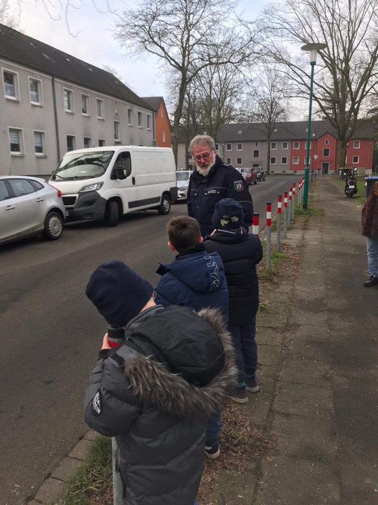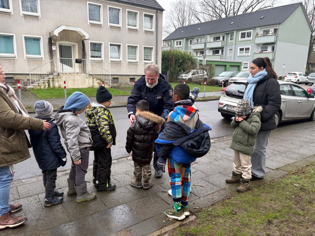 In der vergangenen Woche kam Herr Radtke von der Polizei Duisburg und hat ein Fußgängertraining für die Schüler:innen unserer ersten Klassen durchgeführt. Ziel war es, den Kindern die wichtigsten Verkehrsregeln näherzubringen und sie auf sichere Fußwege im Straßenverkehr vorzubereiten.