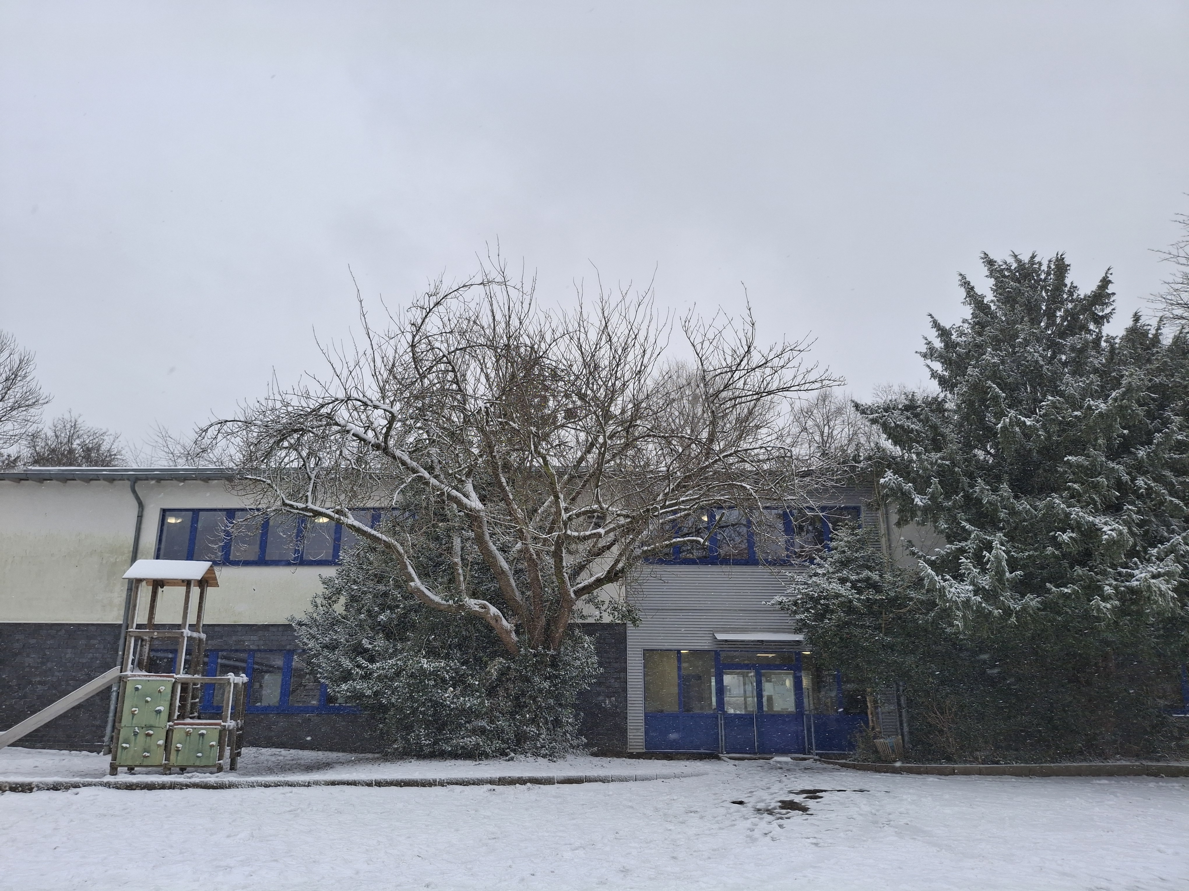 Ein besonderes Highlight war das erste gemeinsame Spielen in den großen Pausen. Überraschend und ungewöhnlich für Duisburg lag Schnee, sodass die Pausenaktivitäten draußen stattfinden konnten. Die Lern- und Pausenkultur profitierten von dem spontanen Gemeinschaftserlebnis im Schnee, das für eine positive, verbindende Stimmung sorgte.