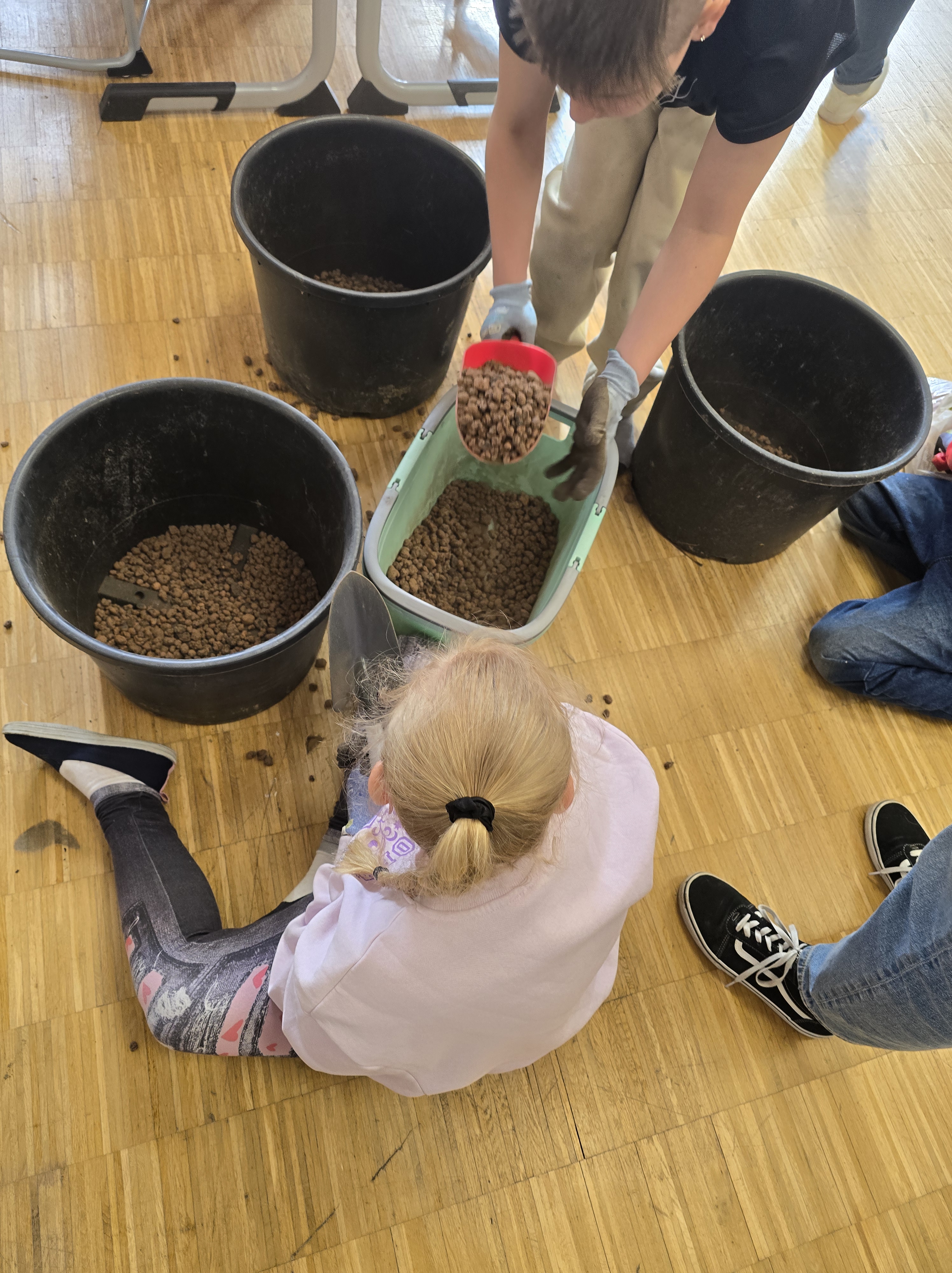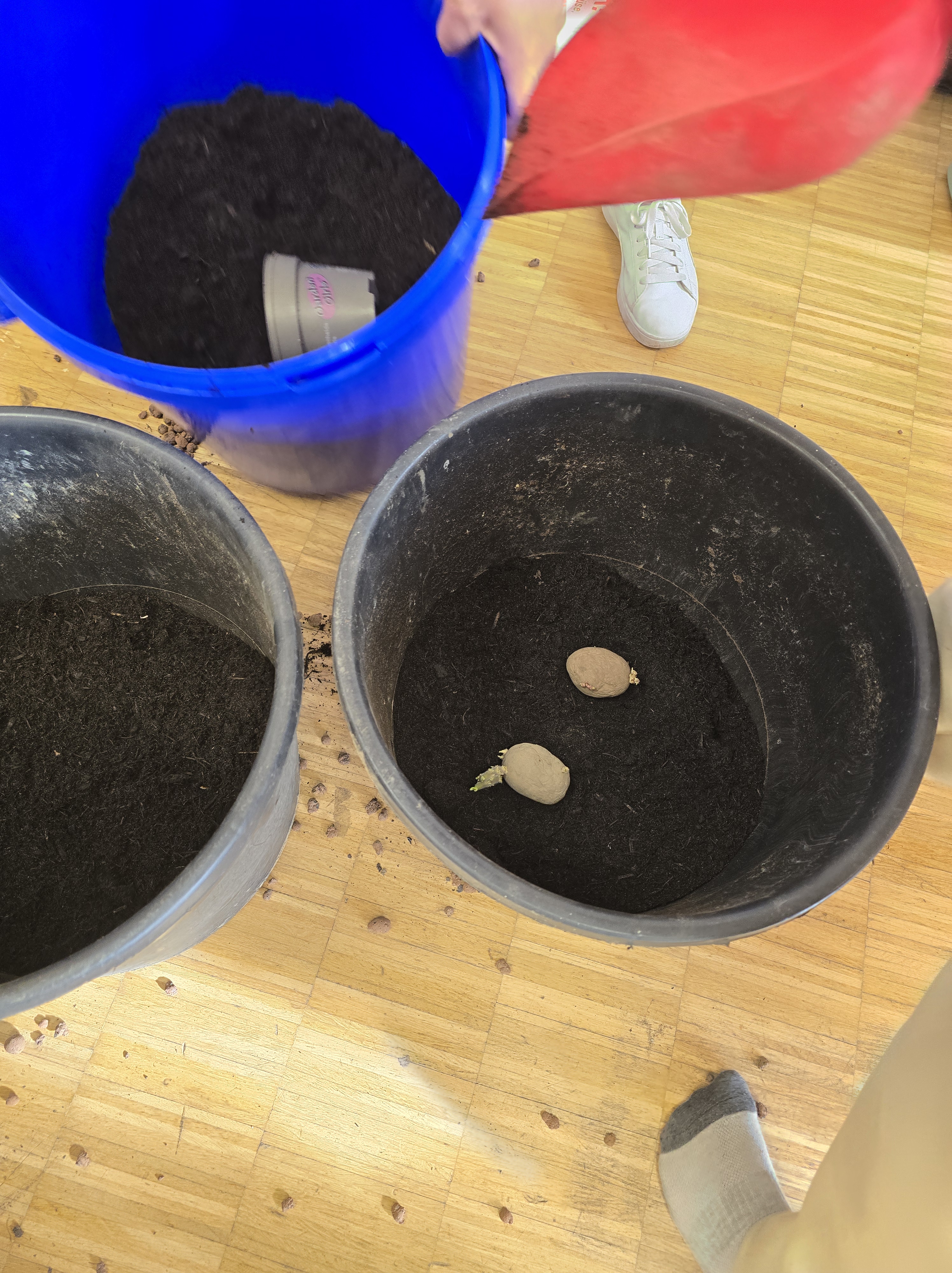 Um im Herbst eine Ernte von Kartoffeln zu ermöglichen, pflanzten die Schülerinnen und Schüler heute Saatkartoffeln. Jedes Kind füllte einen großen Behälter und setzte jeweils eine Sorte für Pommes Kartoffeln sowie rote Kartoffeln. Ziel war es, praktisches Wissen rund um Saat, Pflanzung und Pflege zu vermitteln und die Verbindung zu Lebensmitteln sowie zu regionalen Produkten sichtbar zu machen.