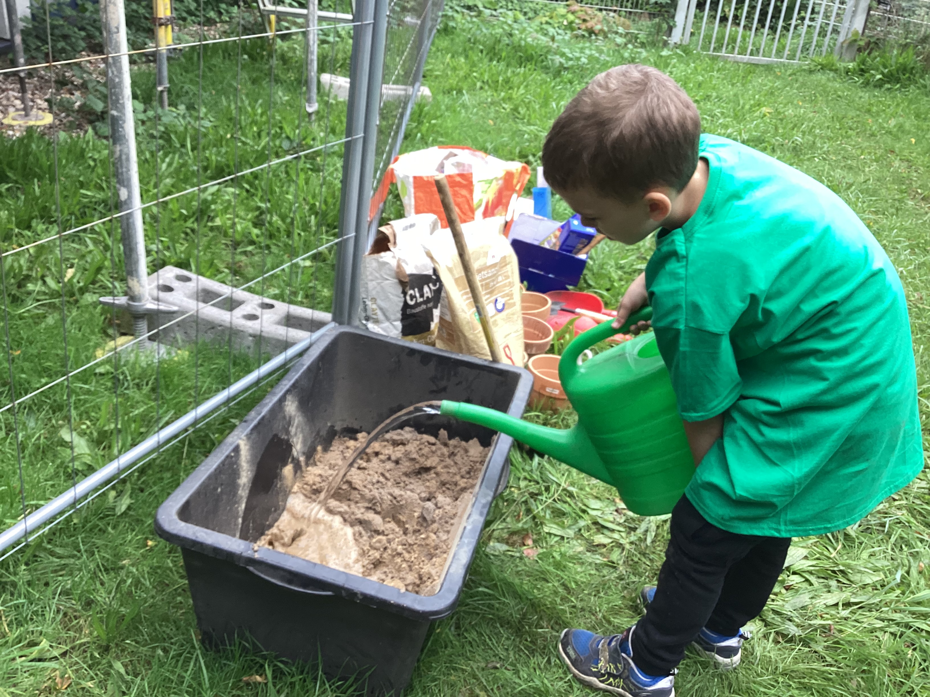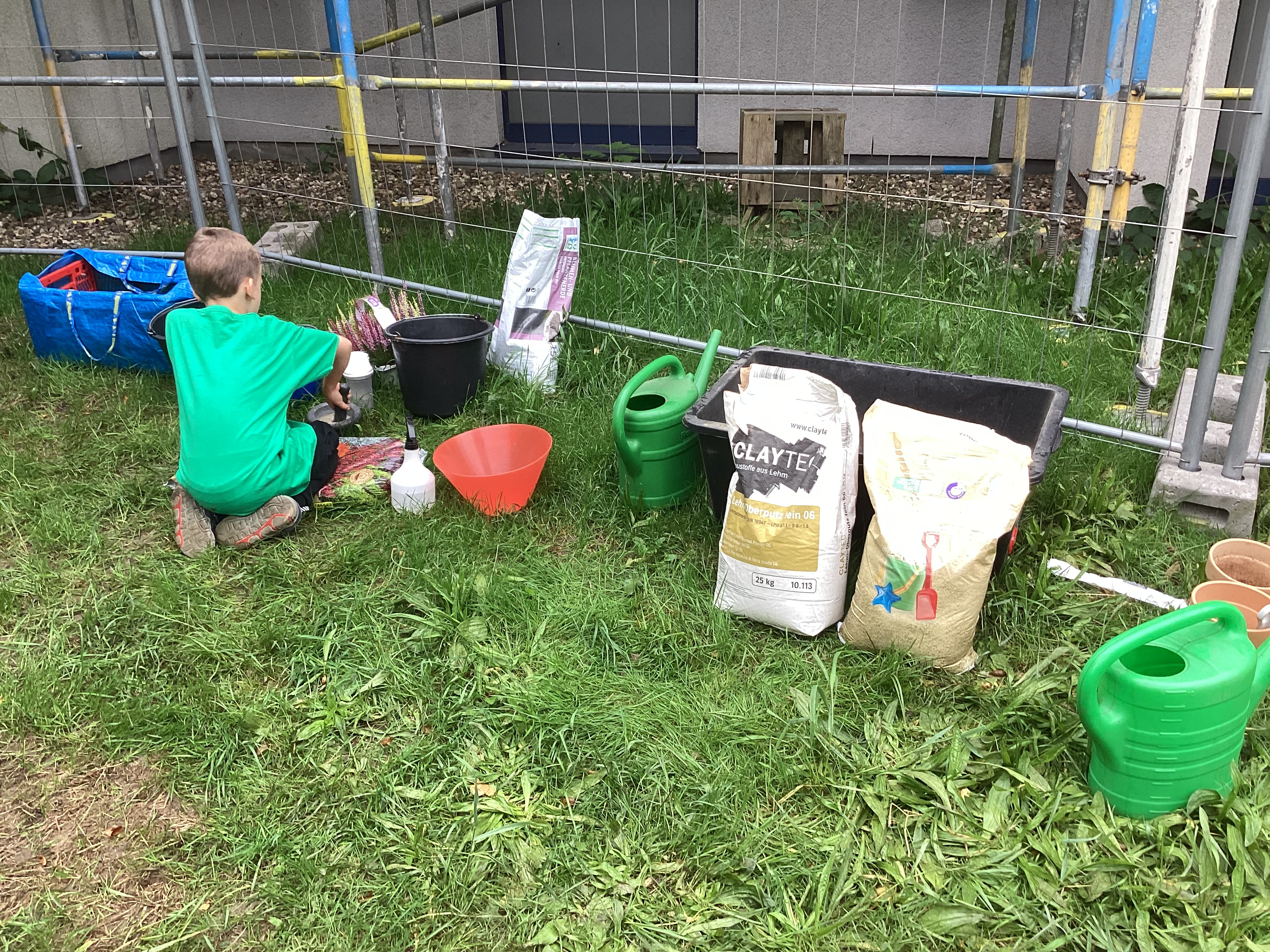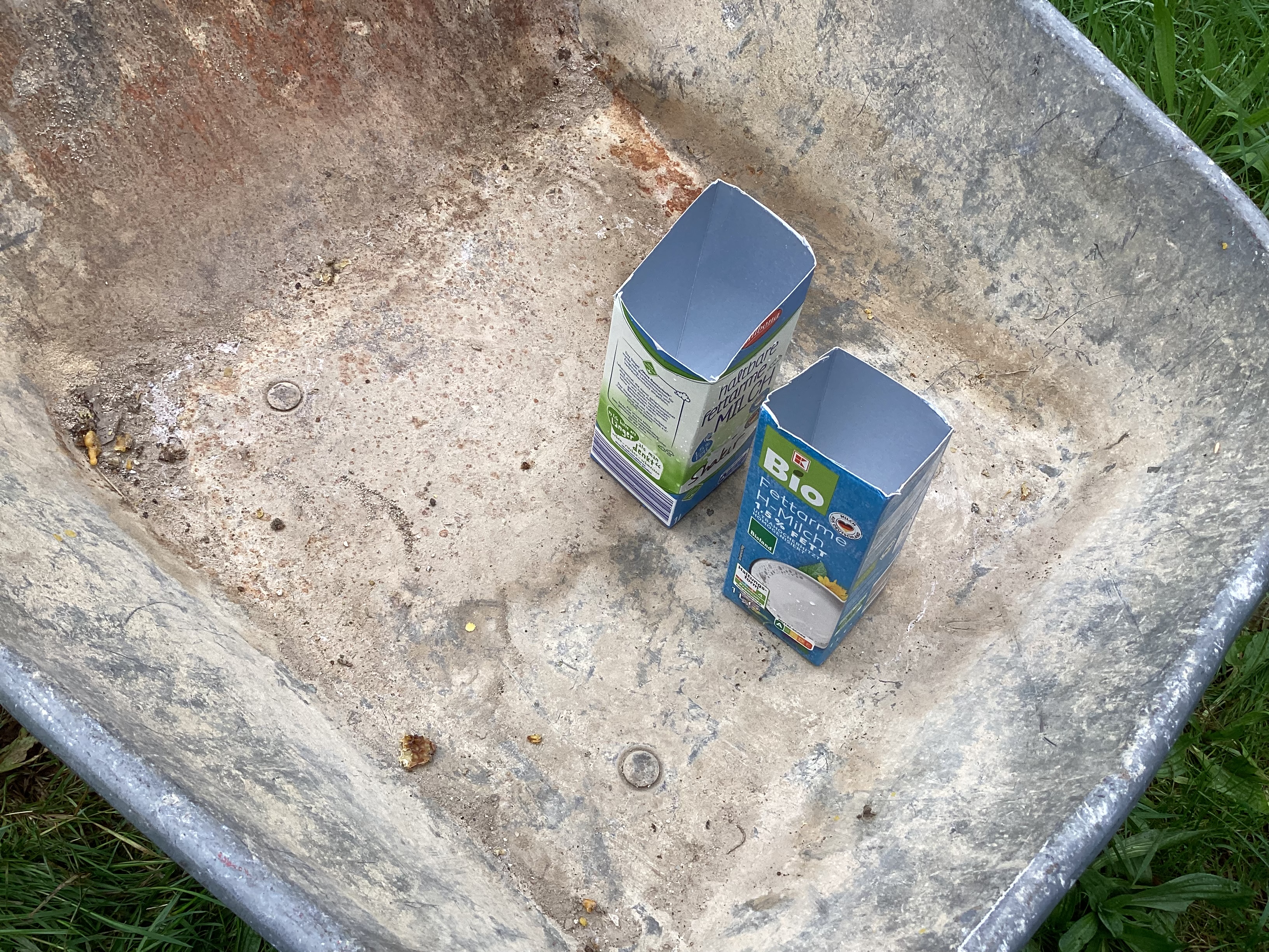 - Den Tetrapack mit einer 1:1 Mischung aus Sand und Lehm füllen und fest andrücken. Du kannst die Mischung auch etwas nass machen.