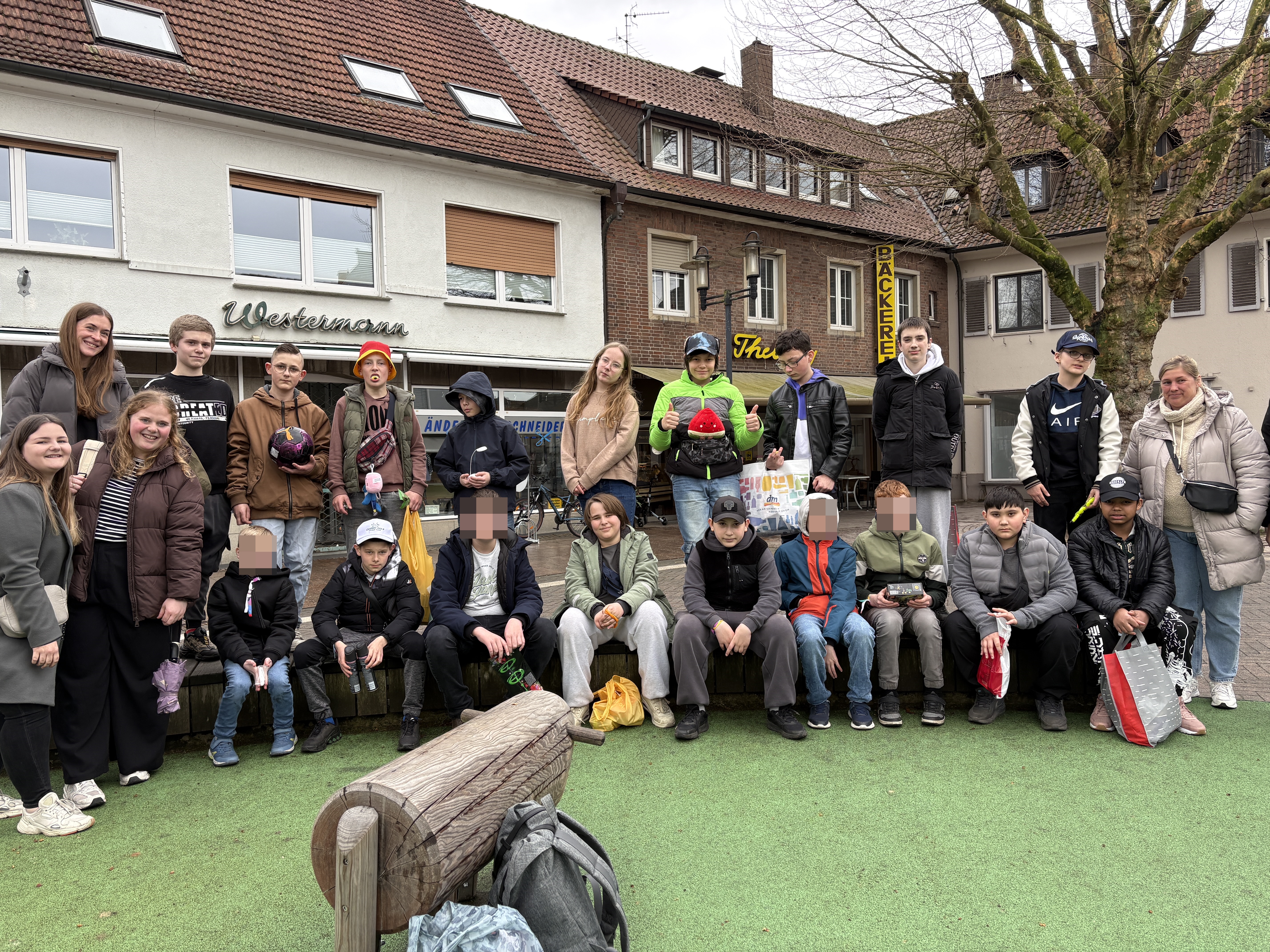 Die Klassen 6A und 6B machten sich Ende März 2026 auf den Weg zur Jugendburg nach Borken – und wurden erstmal mit strömendem Regen begrüßt. Zum Glück hatte das Wetter schnell ein Einsehen, sodass der guten Laune nichts mehr im Weg stand. Zwischen Taschengeld-Ausgaben im Vennehof, einem Kinobesuch und sportlichen Duellen auf dem Fußball- und Basketballplatz war direkt viel los.