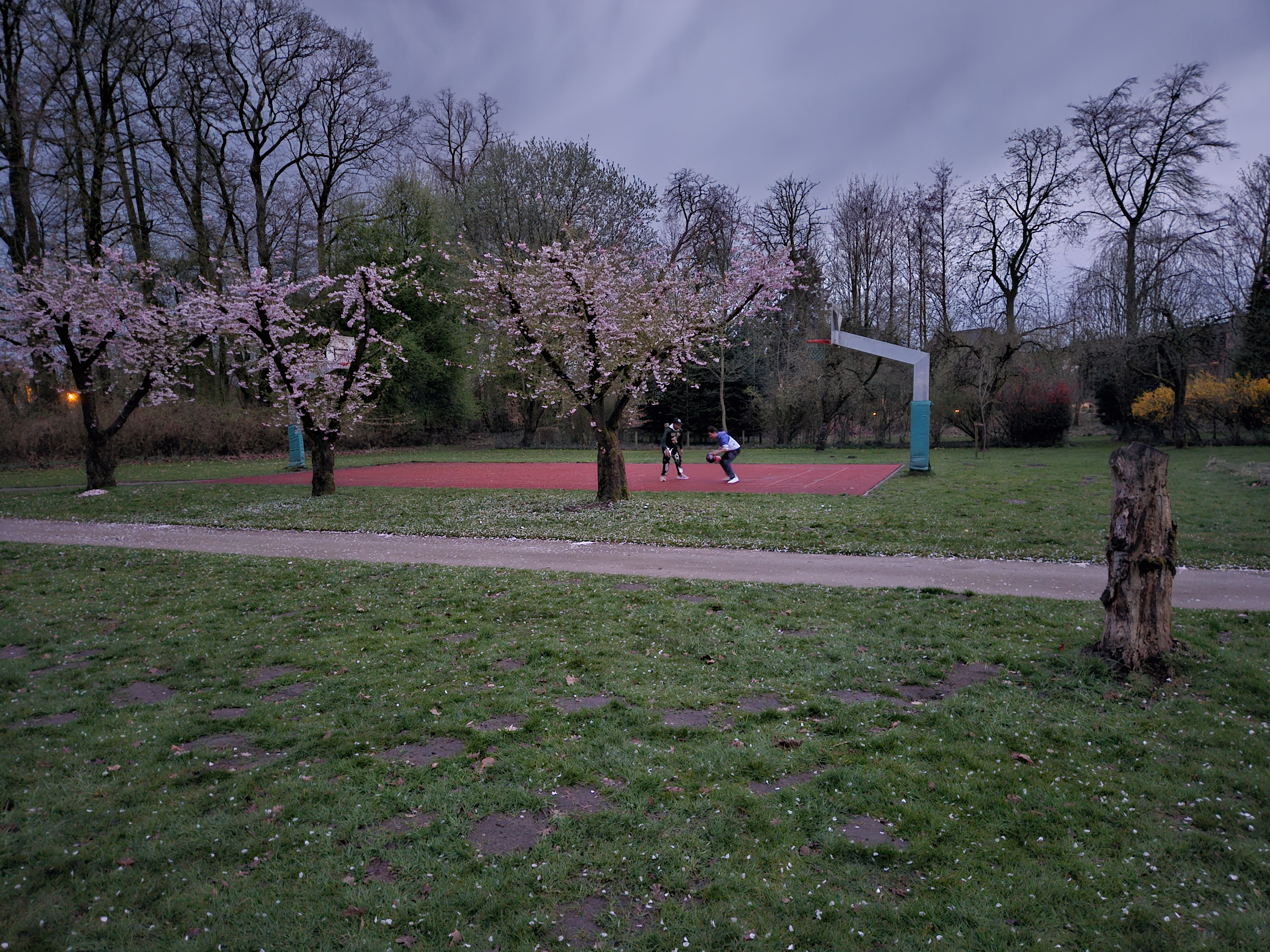Im vergangenen Herbst wurden die Streuobstbäume gepflanzt und sind gut angewachsen. Das Leben auf der Streuobstwiese erwacht, und es ist ein besonderes Ereignis, die selbst gepflanzten Bäume nun in voller Blüte zu sehen. Kirschen, Äpfel, Birnen, Pflaumen, Quitten und Mispeln besiedeln den neu erschaffenen Lebensraum Streuobstwiese. Daneben zeigen viele neu gepflanzte Heckenpflanzen ihre Frühjahrspracht.
