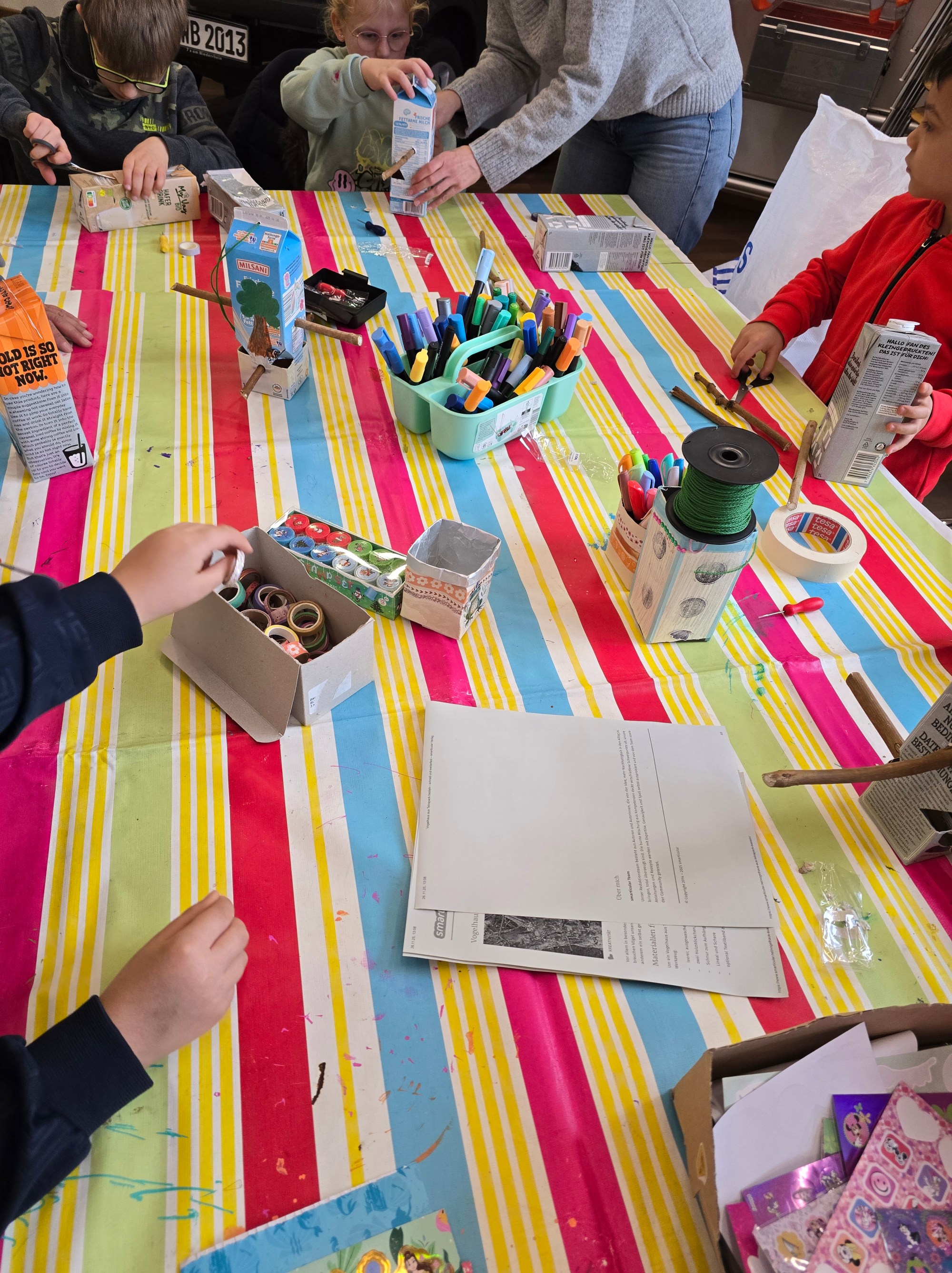 Die Kinder bauten Wildbienennisthilfen und beschäftigten sich mit Upcycling: Aus Milchkartons entstanden Vogelfutterhäuschen. An einer weiteren Station konnten Vogelfuttermischungen mit Fett in Tassen gefüllt werden. So entstanden viele kleine, im Winter wichtige Futterstellen für Vögel.