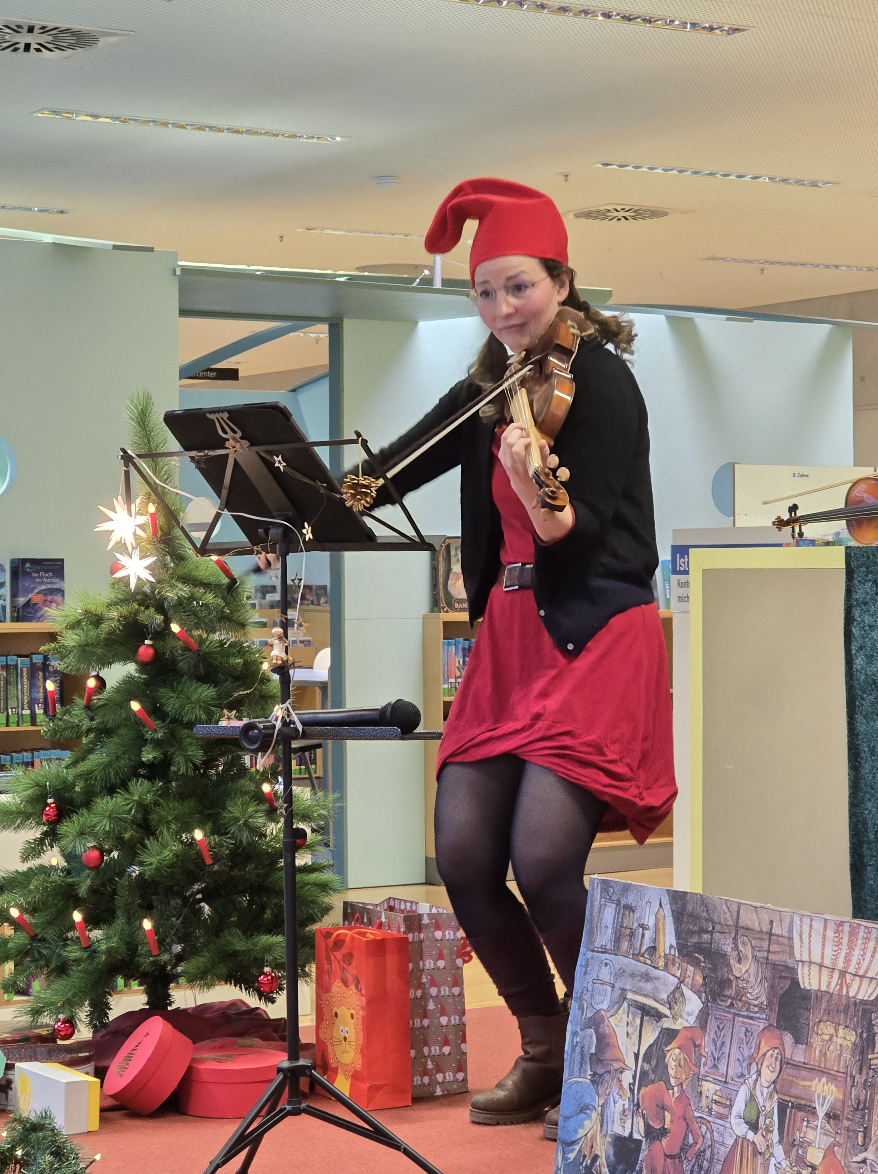 Am 02.12.2025 fand in der Stadtbibliothek eine liebevoll gestaltete Vorlese-Veranstaltung statt. Vorgelesen wurde das Buch „Das Geheimnis der Weihnachtswichtel“. Die Geschichte erzählt, wie der Wichtelvater sich auf seinen Reisbrei an Heiligabend freut, durch den Besuch des Weihnachtsmannes jedoch von den Menschen vergessen wird. Ob es der Wichtelmutter gelingt, Unheil abzuwenden, bleibt Kernelement der Erzählung.
